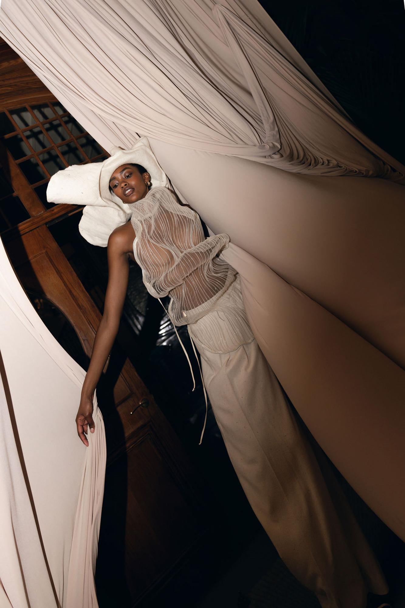 Her runway expressed that evolution through softened structures, rounded sleeves and silhouettes that invited breath. There was a tenderness to the pieces but also an undercurrent of discipline – a delicate balance she sees as central to Connade as she continues to think about the body as a vessel of inheritance. “This tenderness and intimacy is about finding pleasure in simplicity,” she explains. And Mount Nelson, with its storied history and architectural weight, served as the perfect grounding point. “It feels like a monumental metaphor for Connade – timeless and steeped in memory. Presenting here was like placing the past and the future in quiet dialogue.”