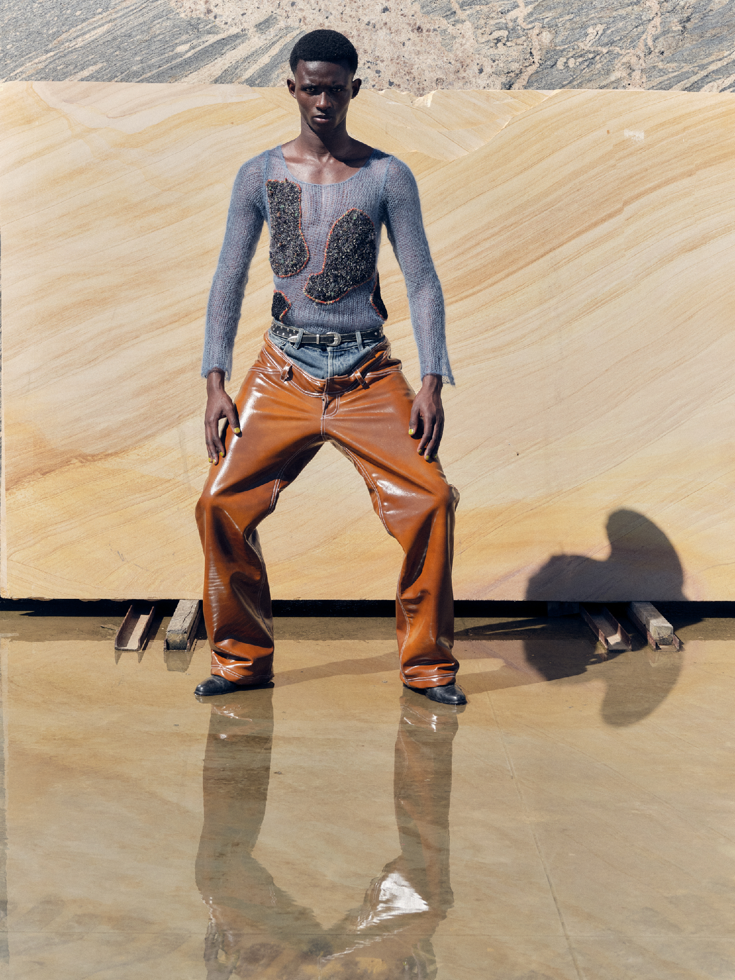 Luxurious textures meet the streets of Cape Town, worn well by new face Avuyile