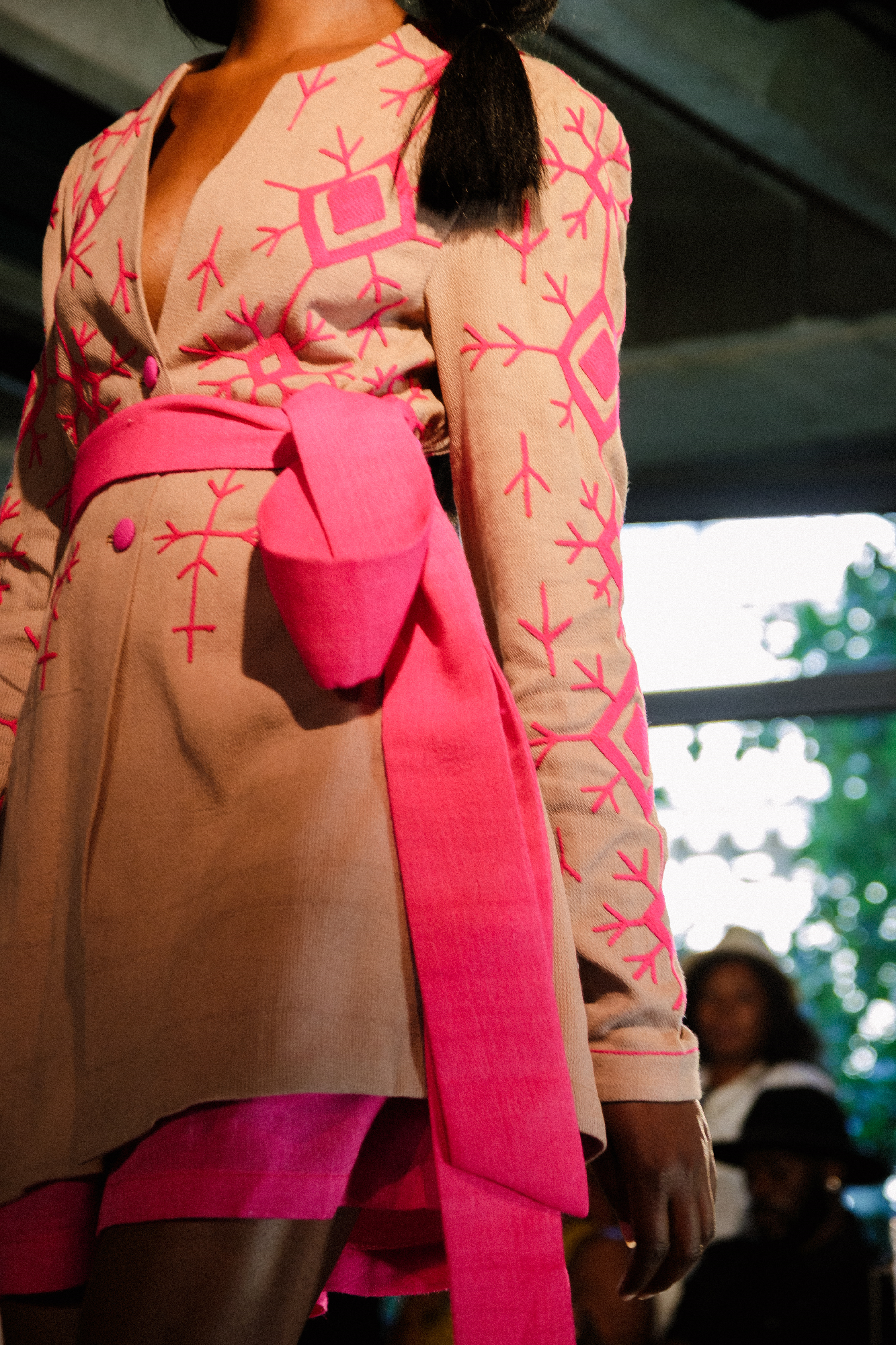 Dagmawit by Dagmawit Tesfaye Yigrem was like stepping back to a more genteel era. The looks, contemporary takes on handmade habeshi kemis, were an exercise celebrating Ethiopia’s master weaving and geometry-inspired embroidery. Understated pencil dresses, blazers and long-line coats in zesty shades were topped off by demure boater hats.