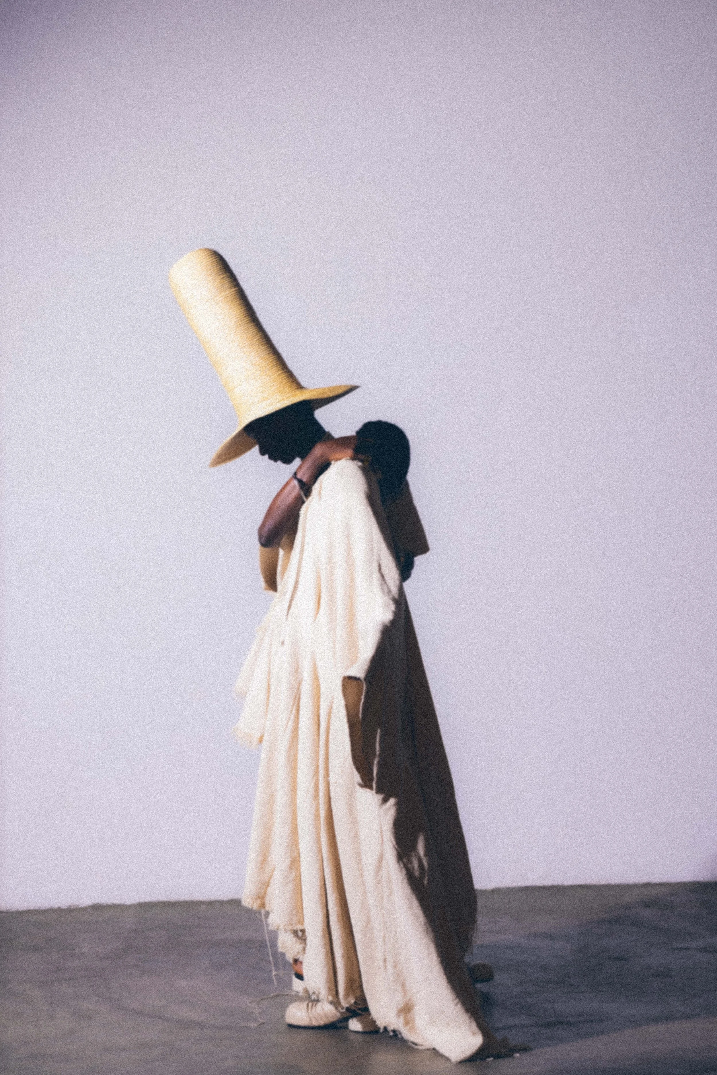 In keeping with her belief that “making is memory, and process is prophesy,” this nomadic talent has traversed East and West Africa to harness fibres and techniques rooted in care. The softness of cotton, jute, raffia and sisal join the hardness of chainmail, blown glass and plastics in garments and adornments that reverberate with both remembrance and imagining.