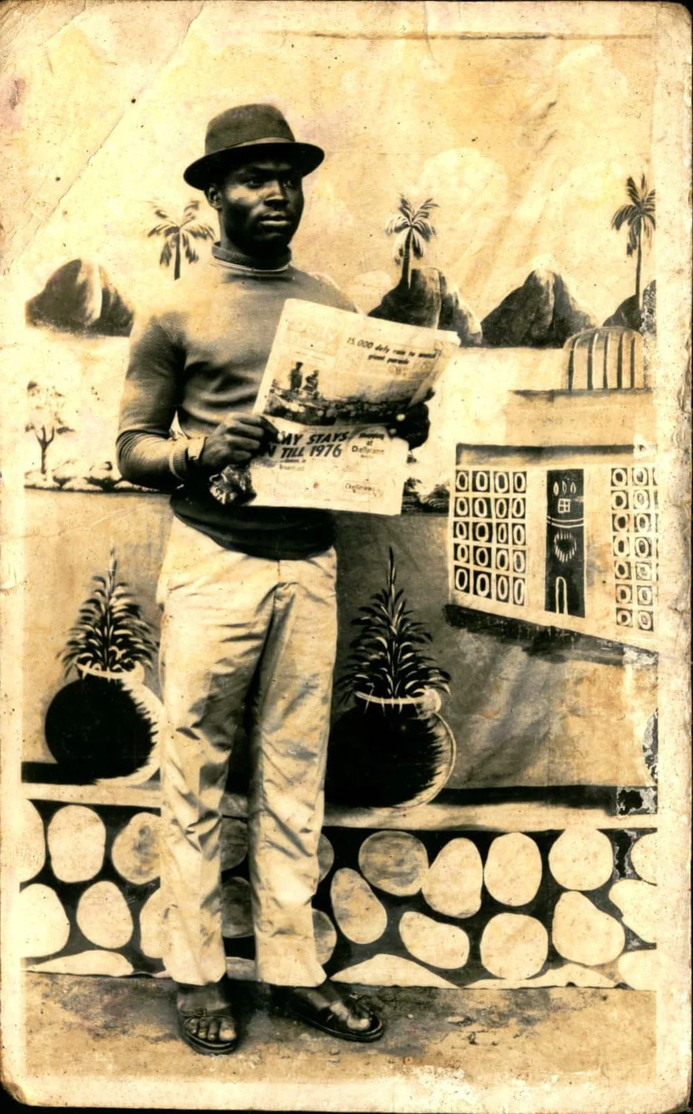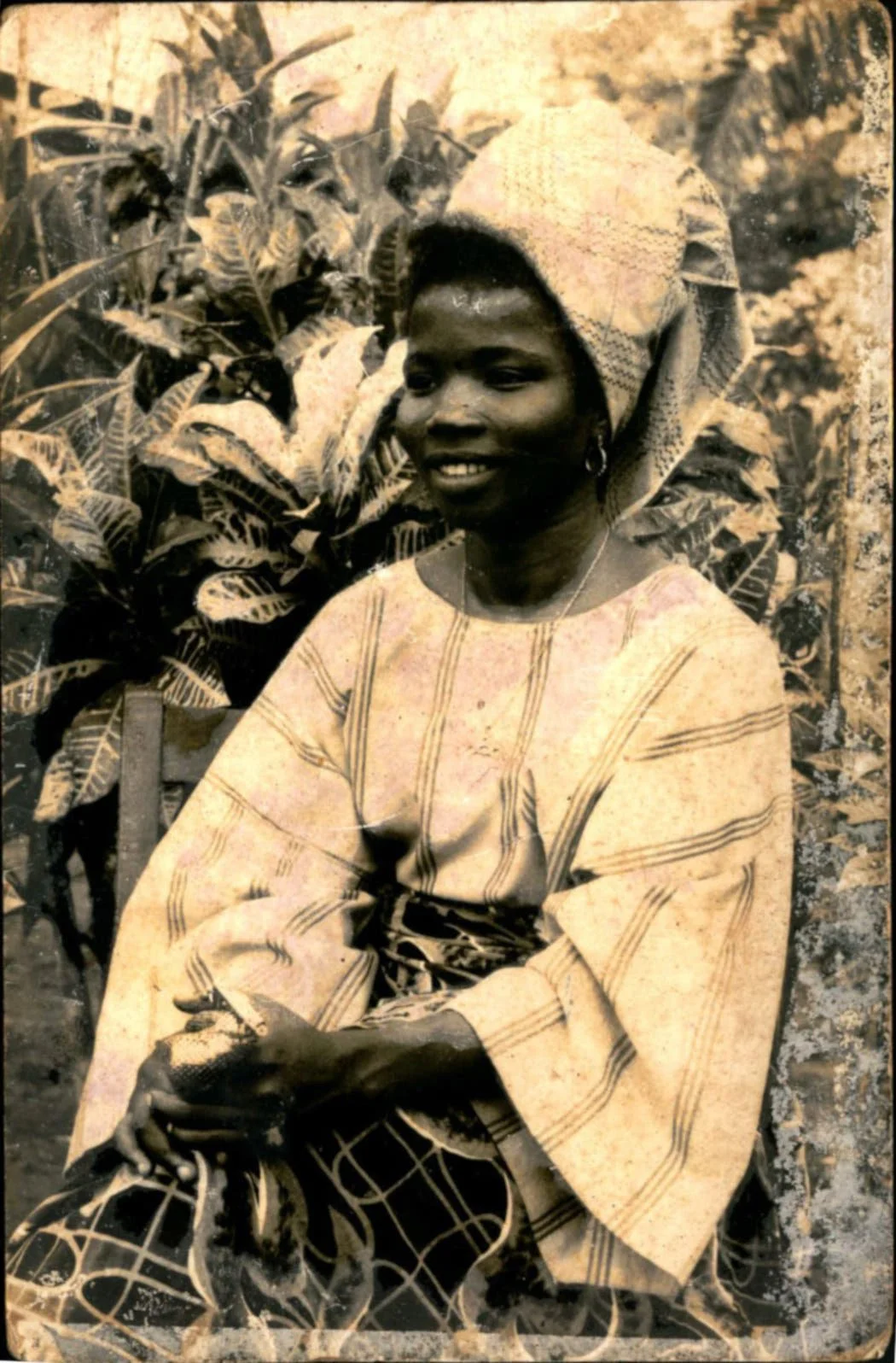 Fast forward to 2019, Oye visited her grandmother in Agege and discovered a bundle photos, postcards and letters from the 1950-70s. “There were conversations, love letters… it was nice to see how things travelled during that time,” she recalls. Oye scanned and stored this treasure trove, going on to move back to Nigeria and launch Meji Meji, which is named after the street her grandmother lived, Ore Meji. And now is the moment that this archive finally comes back to life. The Family Album mesh top is built from these photos while in the film, a motherly figure flicks through her sepia-tinted snaps as she remembers how she met her man.
