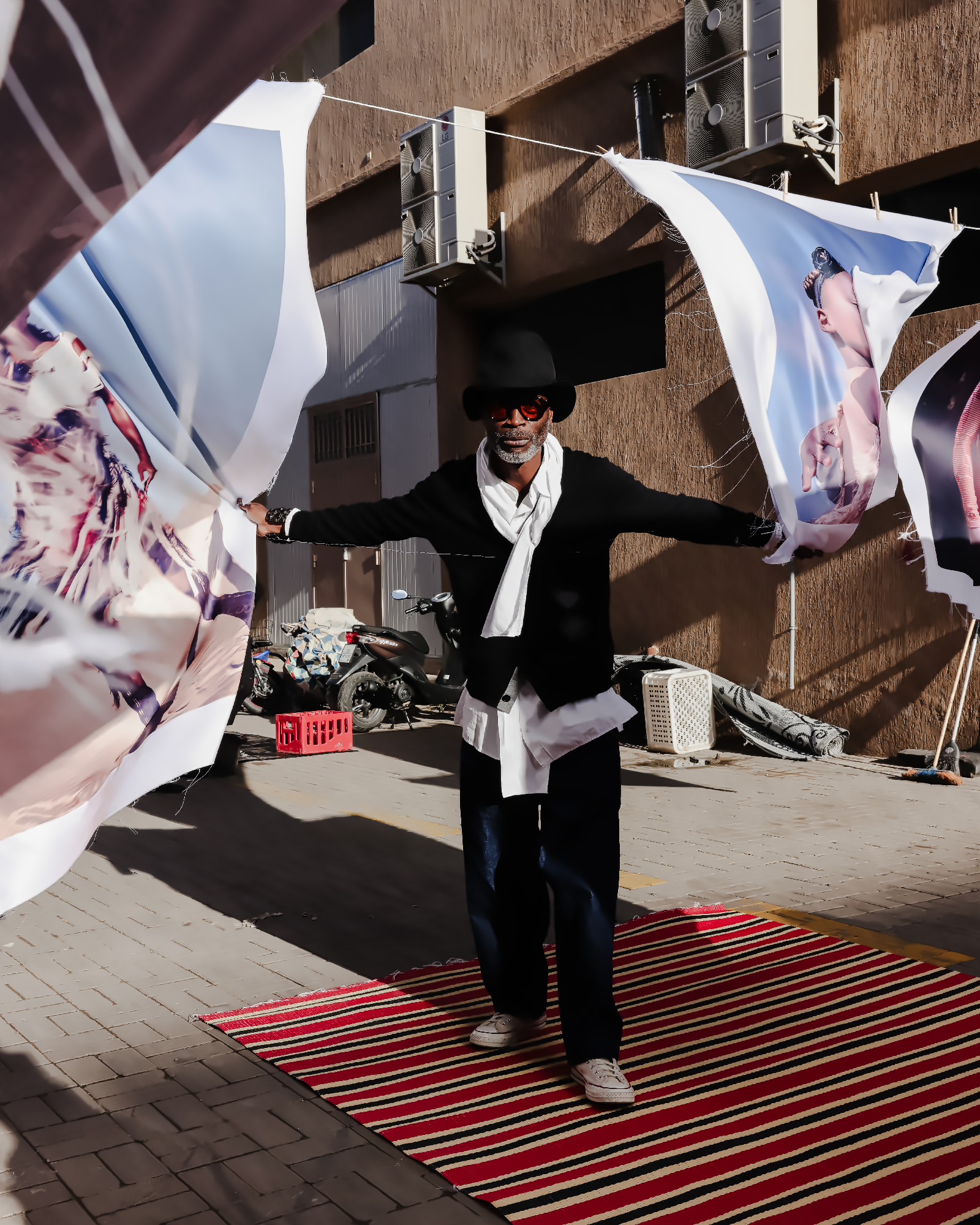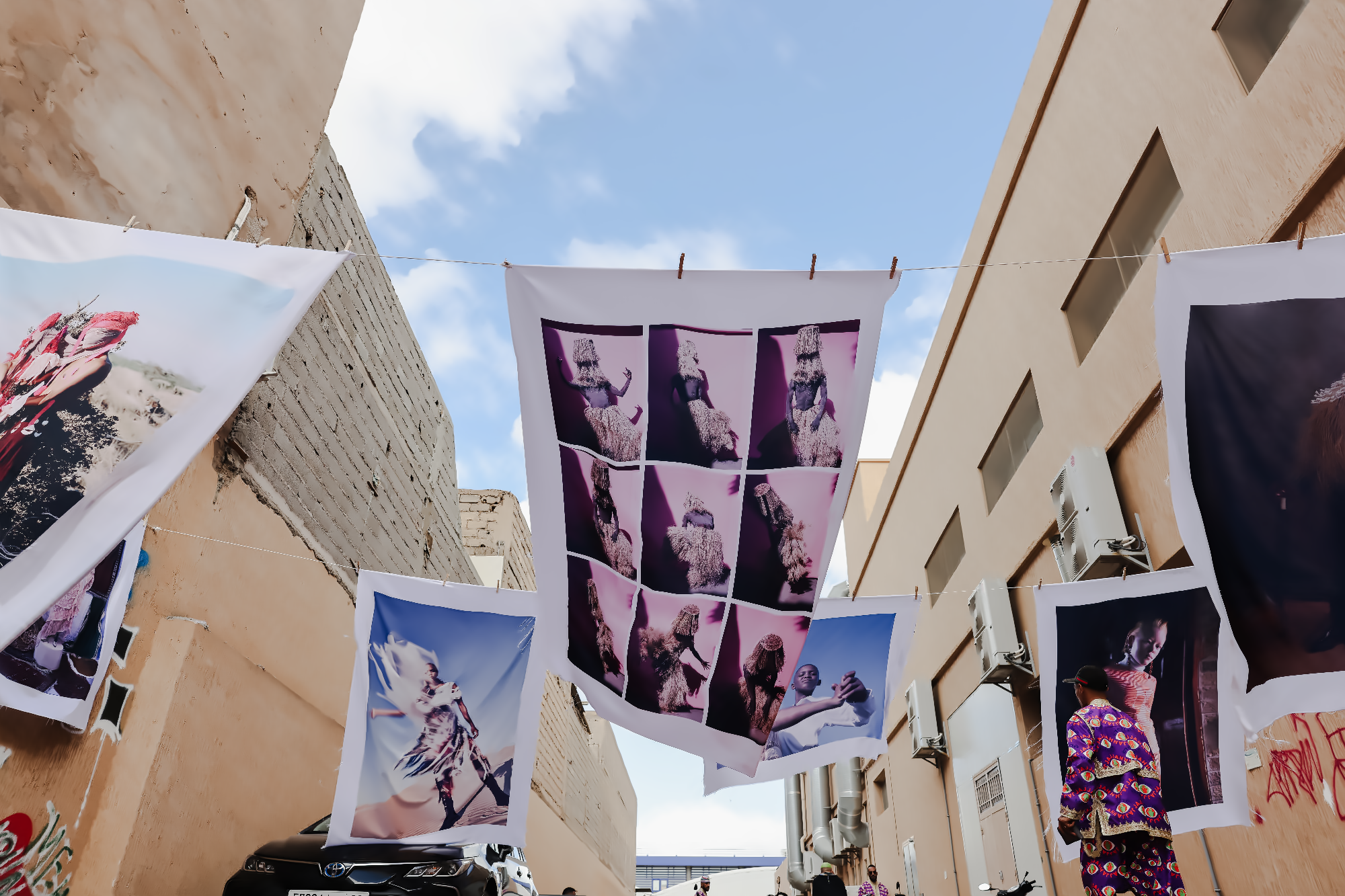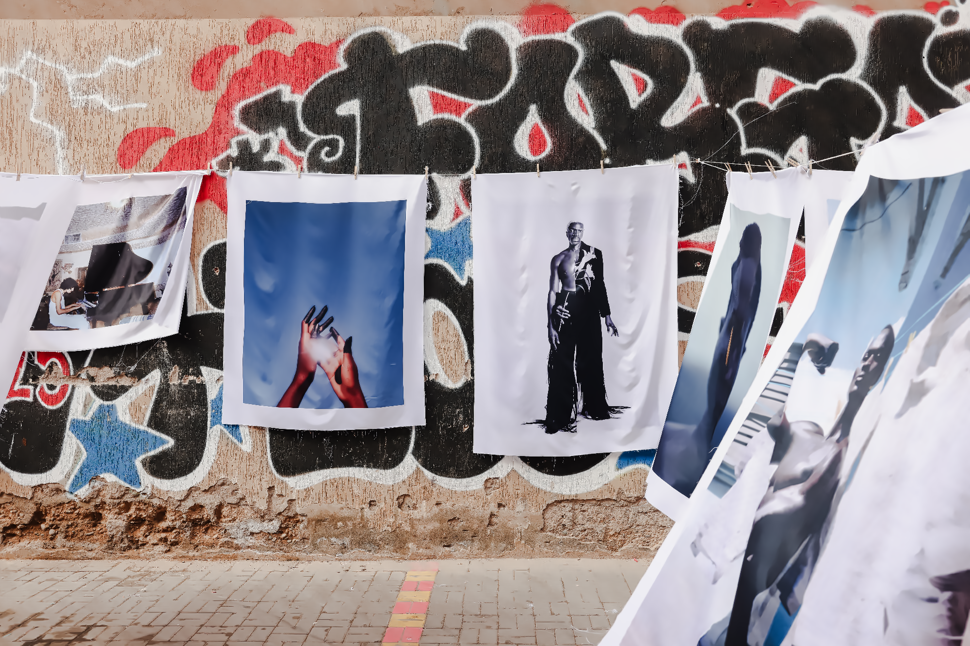 Completing the Kech United line-up, NATAAL took over Jajjah’s outdoor space with an installation of 28 photographic portraits from our 10-years-deep archive and representing some of our most beloved contributing artists. Images were printed on silk and hung on washing lines, allowing the spring breeze to bring them to life. These rich and uplifting works floated and rippled across the expansive courtyard where visitors could playfully encounter each one.