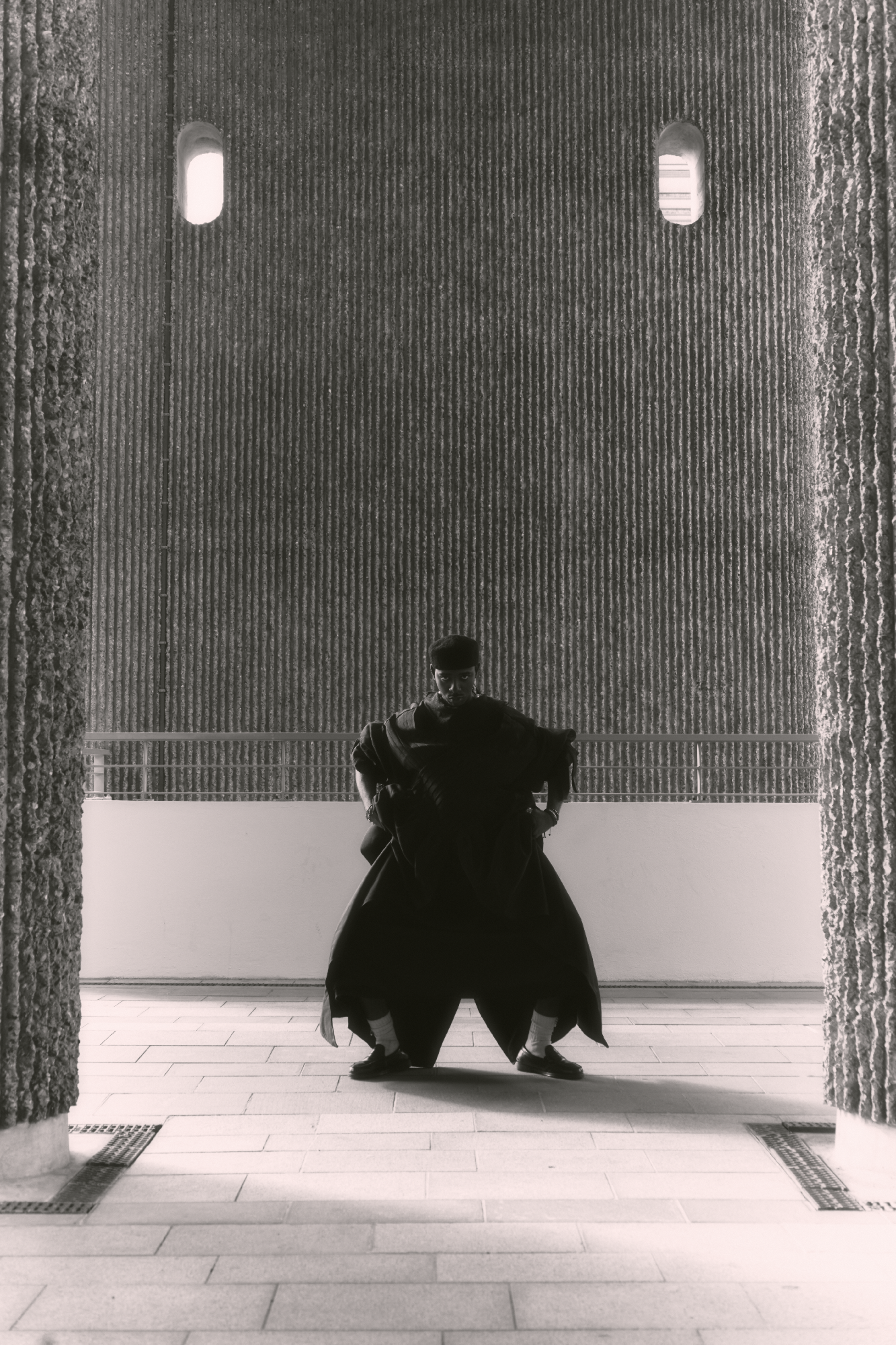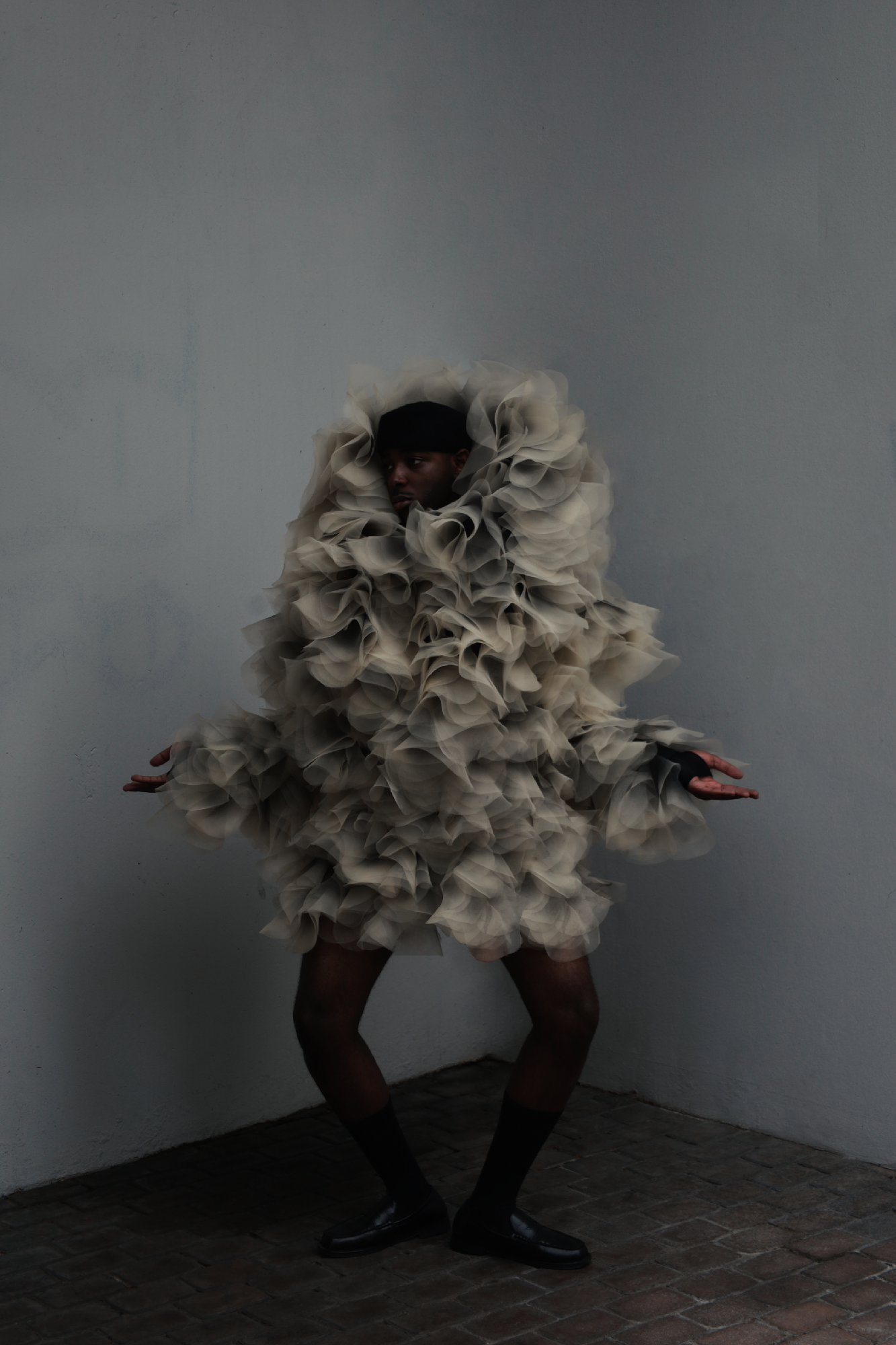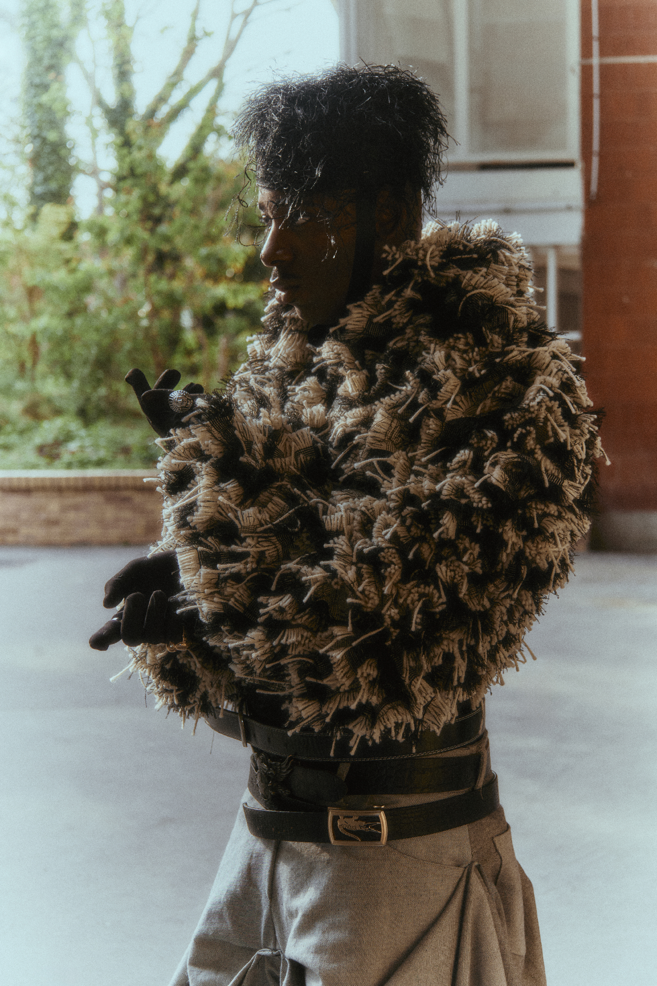 “Military silhouettes, African attire and modern tailoring collide to build a dialogue between ancestral knowledge and the present moment, between peace and confrontation"
