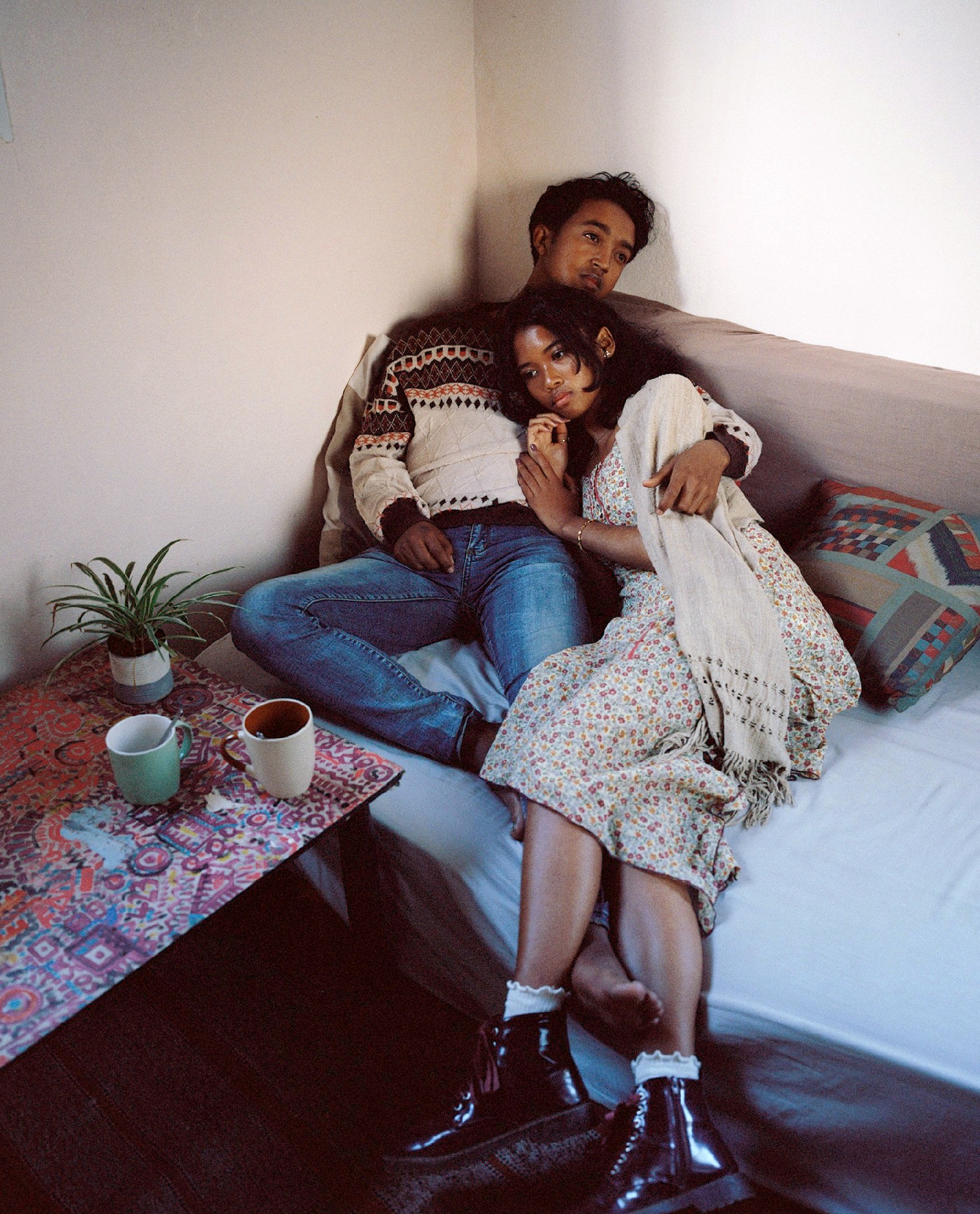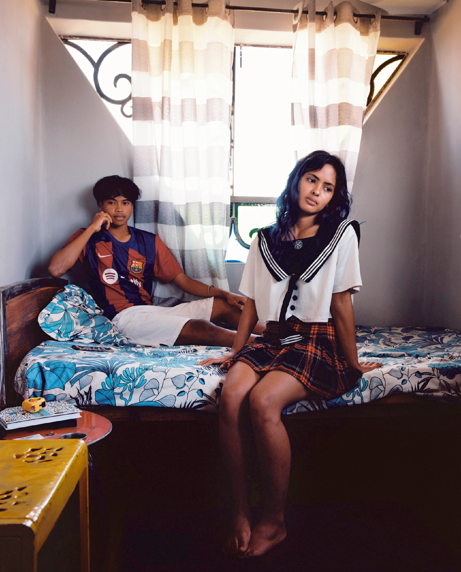 Shot on a Mamiya 7 film camera, her portraits feel warm and humid, layered with ambiguity. Oscillating between fiction and documentary, they are also carefully constructed, with false couples and staged interactions shot in their own homes and personal spaces. She gives her sitters emotional cues and narratives they can inhabit yet the relationships remains elusive, each scene blurring the lines between melancholy, boredom and yearning. “I want people to imagine how it can be [in Madagascar]— to be young, to be romantic, to be disappointed or frustrated about love, as everyone can, and I like you to have many interpretations of one image,” she smiles.